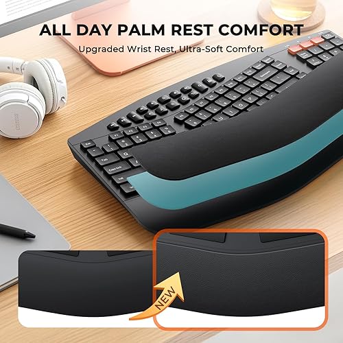 MEETION Ergonomic Keyboard and Mouse, Multi-Device Bluetooth Keyboard and Mouse Wireless, 4 DPI Adjustable Mouse, Full-Sized Split Keyboard, for PC/Computer/Laptop/Tablet/Window/Mac (2025 Upgrade)