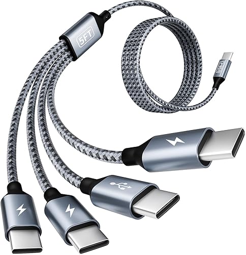 Upgraded 4 in 1 USB C Cable with Dual Type-C for iPhone16, Travel Essentials Multi Charging Cable for Multiple Devices, Phone Charger Cord for iPhone 16-6, Android, iPad, Car Accessories(2Pack 5FT)