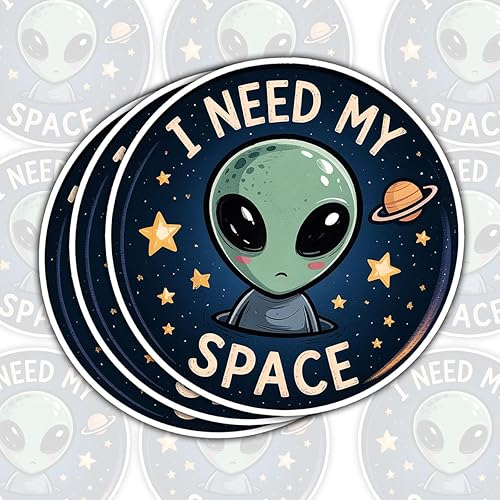 3 Pcs Alien I Need My Space Sticker – Funny Alien Quote Vinyl Decal Waterproof for Laptop, Water Bottle, Tumbler, Car – Gift for Fans, Humor Lovers – 3 Inch 3
