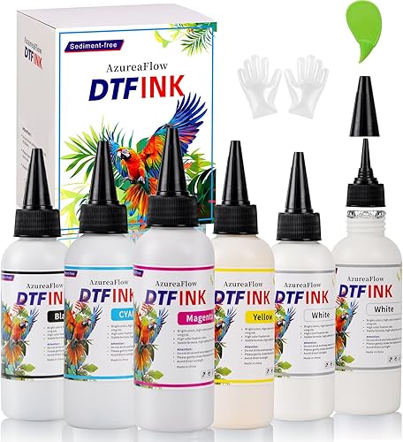 1500ML No Sediment DTF Ink,DTF Transfer Ink for PET Film, with Pointed Spout,Anti Clogging Heat Transfer Ink for Epson ET-8550, L1800, L800, R2400, P400, P800, XP15000 (250ml x 6, CMYK Wh)