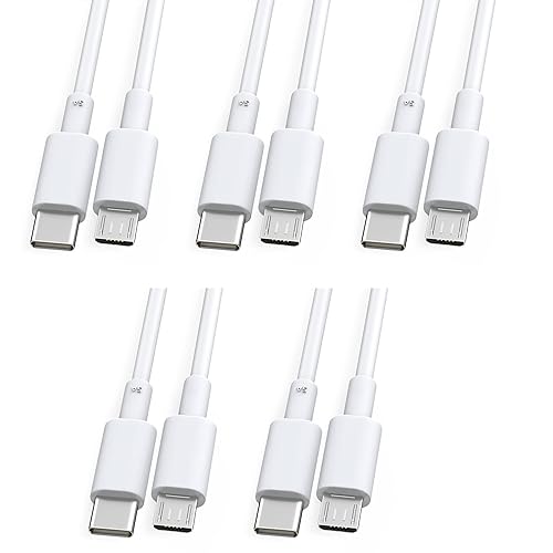 Short 1ft USB C to Micro USB Cable 5-Pack, Data Transfer and Charging Cord Bulk, Black