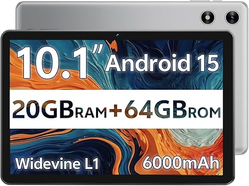 Android Tablet 10 Inch, 2025 Android 15 Tablet for Kids Adults, 20GB RAM 64GB Storage 1TB Expandable, Dual Cameras 8MP 2MP, 6000mAh Dual Speakers WiFi 6