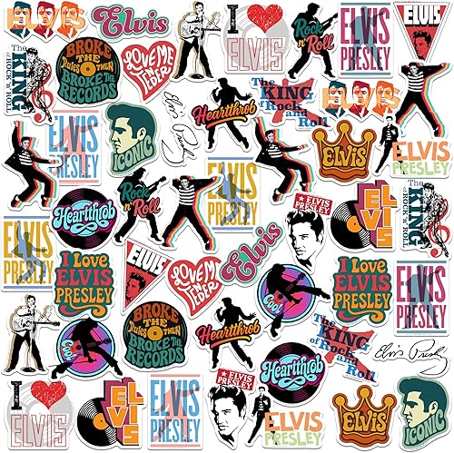 Elvis Presley Iconic 50ct Vinyl Large Deluxe Stickers Variety Pack - Laptop, Water Bottle, Scrapbooking, Tablet, Skateboard, Indoor/Outdoor