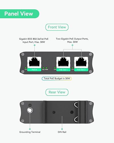 LINOVISION Industrial 2 Ports Gigabit PoE Extender, Passthrough and Split 30W PoE to Two PoE Cameras, PoE Repeater to Extends Extra 330ft - 3 Years Warrenty