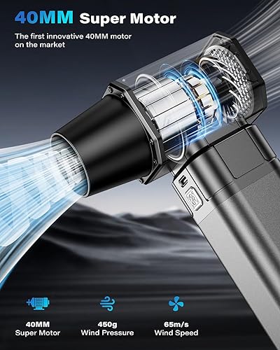 OQTIQ Electric Air Duster-Upgrade 40mm Big Motor, Compressed Air Duster with 450g Wind Pressure, 4-Gear Adjustable Cordless Air Blower for Computer, Keyboard, Car, Home Clean and Outdoor