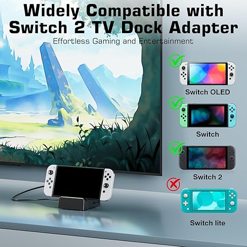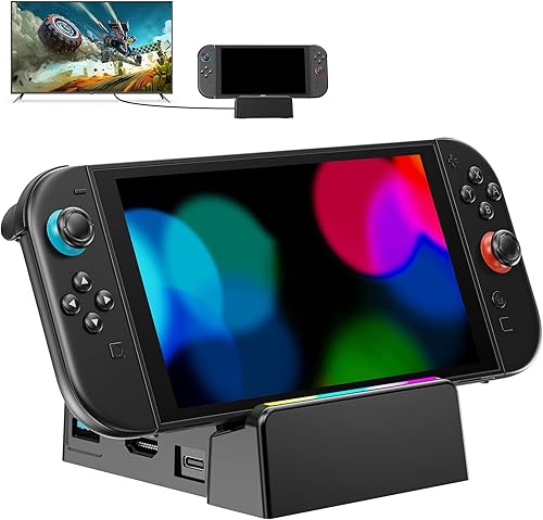 Portable Docking Station for Switch 2/Switch/Switch OLED, TV Dock with 4K HDMI Output, 45W Charging Input, RGB Lighting, USB 3.0 Port, Compact Charging Stand for Switch 2 Console (No Cords Included)
