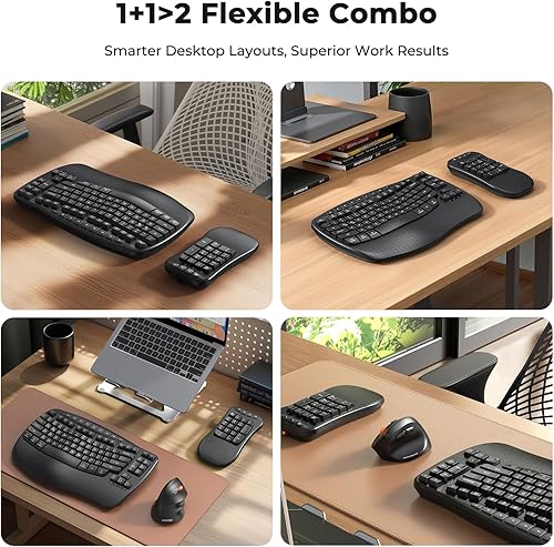 MEETION Ergonomic Keyboard Wireless with Separate Numeric Keypad, Wave Flexible 2-in-1 Setup for Multi-Device, 2.4G/Bluetooth Split Design with Wrist Rest for Accountants/Data Entry/Left-Handed