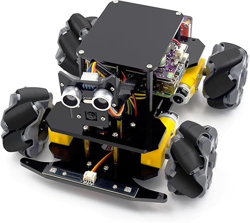 Adeept 4WD Mecanum Wheel Smart Car Kit for Raspberry Pi 5/4B/3B/3B+(Board Not Included), Line Tracking, Light Tracing, Obstacle Avoidance, Servo Motor, OLED Display, LED Dot Matrix Display