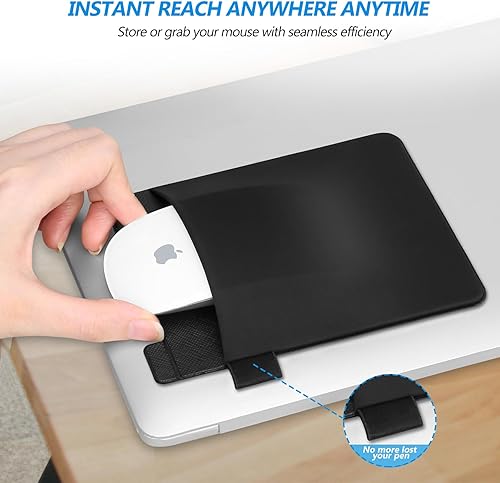 Lacdo Mouse Holder for Laptop Stick on, Laptop Mouse Holder, Universal Wireless Mouse Pouch Case for Magic Mouse, Adhesive Pocket Sleeve, No Glue Residue, Compatible with iPad or MacBook, Black