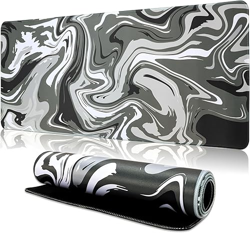 Mouse Pad Gaming Mousepad, 31.5 x 11.8in Large Desk Mat Keyboard Pads Extend Long XL Mouse Mat with Non-Slip Base Desk Accessories for Home Office Keyboard Mouse (White Topographic)