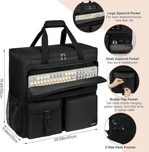 Gaming PC Travel Case Backpack for ATX Mid-Tower Desktop Computer, Waterproof Shockproof Portable Carrying Case with Padded Straps & Storage for Keyboard, Mouse, Cables
