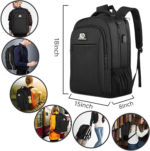 Large Travel Laptop Backpack, Business Anti Theft Slim Sturdy 18 Inch Laptop Backpack with USB Charging Port, Waterproof College Computer Bag Gift for Mens & Women Backpack, Black