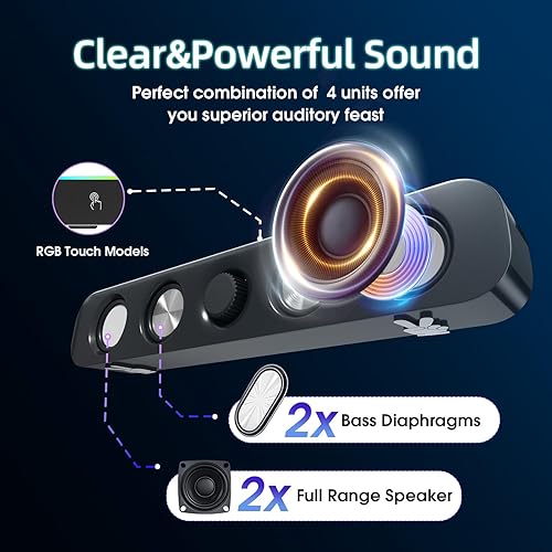 USB Computer Speakers,Wired USB-Powered Bluetooth Computer Sound Bar with RGB & Volume Knob for PC Desktop Computer and Laptops(Black)
