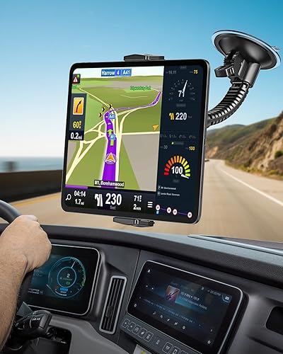 APPS2Car Truck Tablet Holder with Heavy-Duty 4.33" Large Suction Cup, 8-Level Non-Sticky Vacuum Suction Power, Ultra Stable Double-Rib Adjustable Arm, Tablet Car Mount for iPad Pro Air Mini Samsung