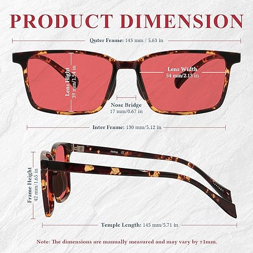Fluorescent Light Filter Glasses with Pink Lenses & TR90 Tortoiseshell Frame for Light Sensitivity, Photophobia Indoor/Outdoor Use Lightweight Glasses for Men/Women