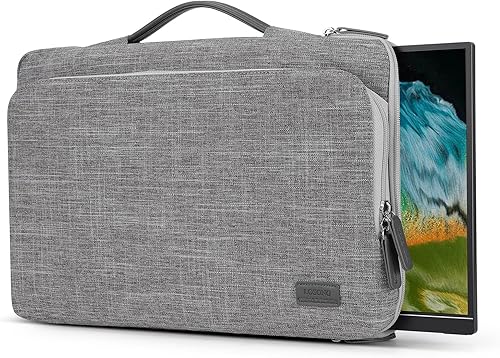 16.1/15.6 Inch Portable Monitor Case, 15.6 inch Laptop Protective Carrying Cover with PU Handle, Large Accessory Pocket and Water Resistant for Travel Monitor Bag Display Screen Sleeve, Black