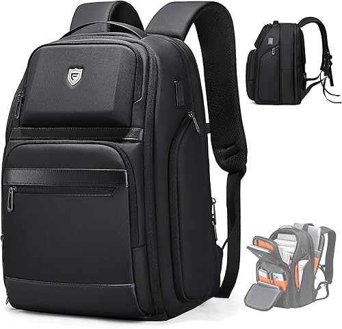 hk Laptop Backpack for Men with USB Charging Port Water-Resistant for 17.3 Inch Computer Bag Durable High-Tech Daypack Casual Backpack for Business Work College Weekender Travel- Black