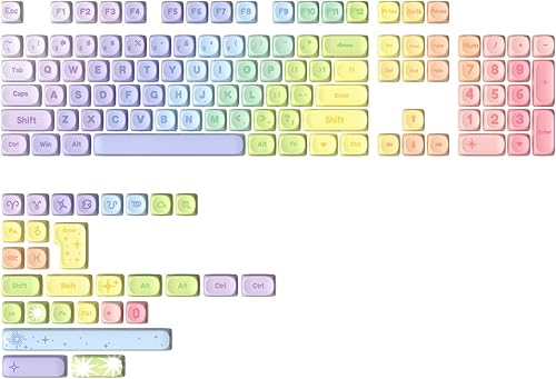 YUNZII 140 Keys MOA Keycaps, Dye-Sublimation PBT Custom Keycap Set for MOA Profile, Cute Rainbow Candy Keycap for MX Switches Mechanical Gaming Keyboard(Rainbow)