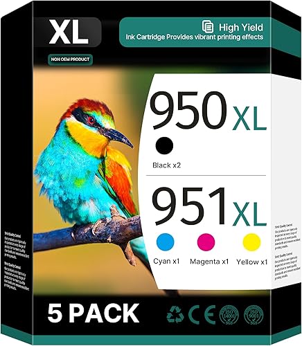 950XL and 951XL Ink Cartridges Combo pack (5-Pack) Replacement for HP 950XL 951XL Ink Cartridges for HP Printers OfficeJet 8600 Series Pro 251dw, 8100, 8600 Series,C2P01FN, 2 Black,Cyan,Magenta,Yellow