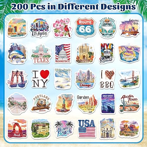 200 PCS USA State Travel Stickers, US National Park Travel Stickers for Scrapbooking Water Bottle Laptop Journal Souvenirs Vinyl Landmarks Decals for Kids Teens Adults