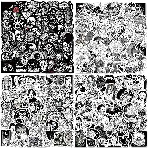 200Pcs Goth Stickers Pack, Black and White Sticker, Cool Skull Stickers for Adults Mens Teens Girls, Waterproof Vinyl Horror Decals for Water Bottle Laptop Luggage Journal Scrapbooking