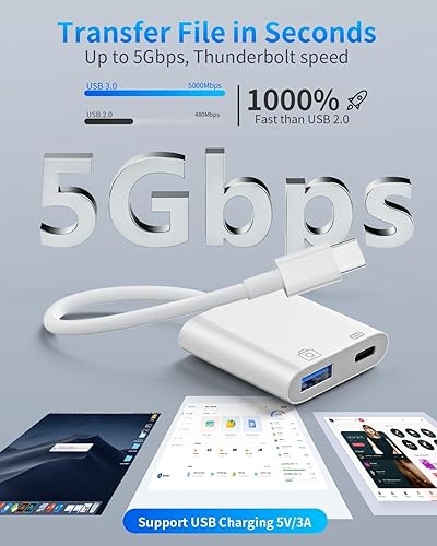 USB C to USB Camera Adapter for iPhone 16/15, USB3.0 Female OTG Adapter with Fast Charging Port for iPhone 16/16 Pro Max/16 Plus/15 Pro Max/15/iPad/iPad Pro to USB Flash Drive/Keyboard/Mouse