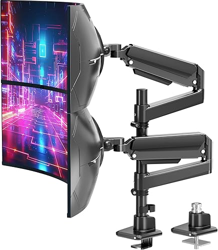 MOUNT PRO Dual Monitor Arm for Max 49" Ultrawide Screens up to 44 lbs, Heavy Duty Extra Tall Monitor Desk Mount, Vertical Stacked Adjustable Dual Monitor Mount, VESA Mount 75x75mm/100x100mm