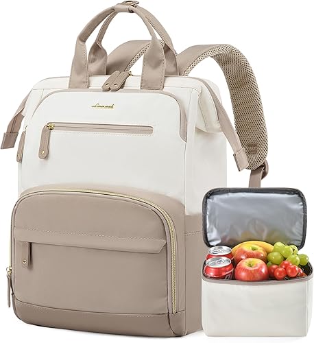 LOVEVOOK Lunch Backpack for Women, 15.6 Inch Laptop Bag with Insulated Cooler Lunch Box, Work Backpack for Teacher Nurse, Travel Backpack Lunch Bag for Camping Picnic Daily Use