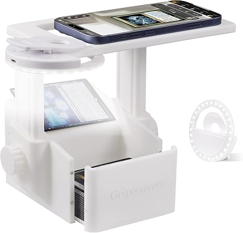 Trading Card Scanner Stand with Light, Card Scanner Holder with Adjustable Height for TCG Cards, Built-in Magnetic Ring Compatible with MagSafe Phones, Rechargeable Light & Stable Magnetic Card Slot