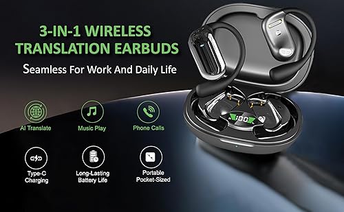 AI Translation Earbuds Real Time 144 Foreign Language Translator Device 3in1 Headset, No Subscription Pocket-Sized Wireless Bluetooth Translate Headphones For International Travel Learn Interpretation