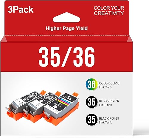 PGI-35 CLI-36 TR150 TR160 Ink Cartridge 6 Pack for 35 36 Ink Cartridge Work for Canon TR150 Ink Cartridges for PIXMA IP110 TR160 IP100 TR152 IP 110 IP100 Ink PGI 35 Black CLI 36 Color Printer 4 BK 2C