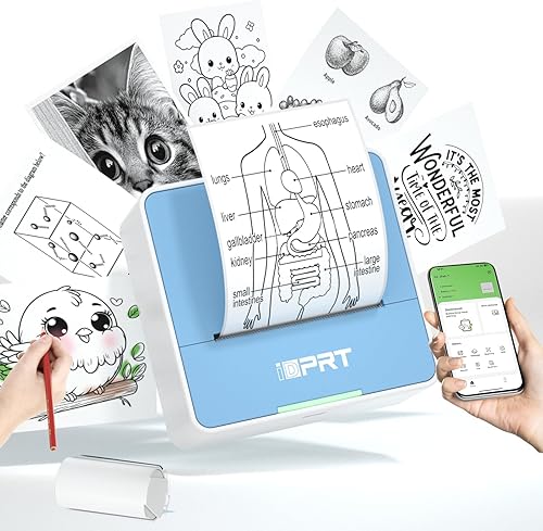 iDPRT Sticker Printer - Mini Portable Printer Bluetooth Thermal Label Printer with 1 Roll Sticker Paper, Inkless Sticker Maker Machine Pocket Instant Print for Study Notes, Pictures, DIY, Blue