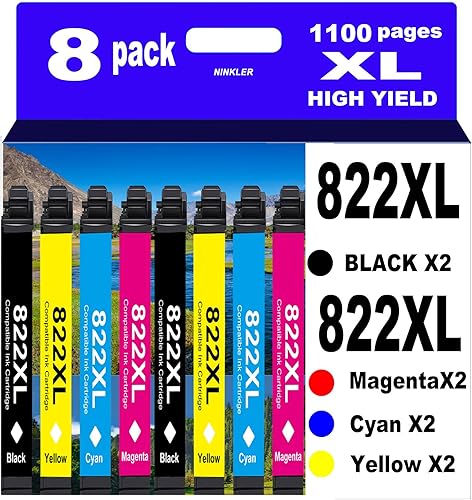822XL Remanufactured for Epson 822XL Ink Cartridges for 822 XL T822 Workforce Pro WF-3820 WF-3823 WF-4820 WF-4830 WF-4833 WF-4834 Printer 5 Pack 2 Black 1 Cyan 1 Magenta 1 Yellow