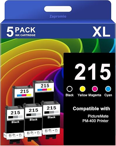 5-Pack T215 215 Ink Cartridges Remanufactured for Epson 215 Ink for WF-100 WF-110 EC-C110 Mobile Printer(3 Black x T215120-S, 2 Tri-Color x T215530-S Pigment C/M/Y/K BCS)