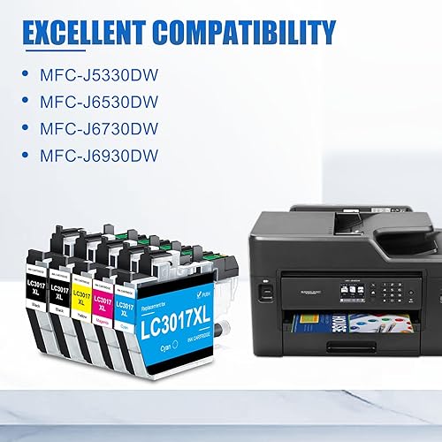 LC3017XL High Yield Ink Cartridges 5 Pack (Includes 2 Black 1 Cyan, 1 Magenta, 1 Yellow) Replacement for Brother LC3017 LC3017 XL Ink for MFC-J5330DW MFC-J6530DW MFC-J6930DW MFC-J6730DW Printer