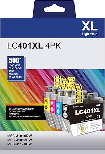 LC401XL Ink Cartridges Compatible for Brother LC401 LC401XL High Yield Work with Brother MFC-J1010DW MFC-J1012DW MFC-J1170DW Printer (Black Cyan Magenta Yellow, 4 Pack)