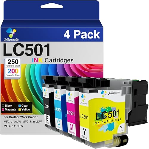 LC501 LC-501 High-Yield Ink Cartridges Compatible for Brother LC501 Series Ink LC501XL use with Brother MFC-J1260W MFC-J1360DW MFC-J1410DW Printers (4 Pack, Black Cyan Magenta Yellow)
