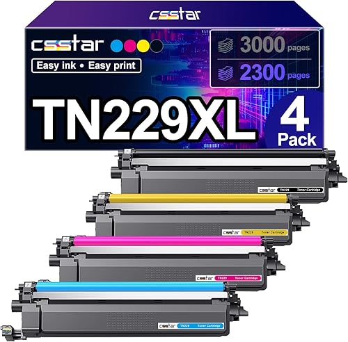 TN229 Toner cartridges Compatible Replacement for Brother HL-L3220CDW/ MFC-L3780CDW/ HL-L3280CDW/ HL-L3300CDW Printers(4 Pack, BK/C/M/Y)