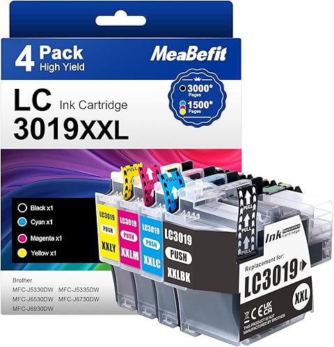 LC3019XXL LC 3019XXL LC3017 Ink Cartridges High Yield Replacement for Brother LC3019 LC3019XXL LC3017 Ink Cartridges Compatible with Brother MFC-J5330DW MFC-J6730DW MFC-J6930DW MFC-J6530DW(4 Pack)