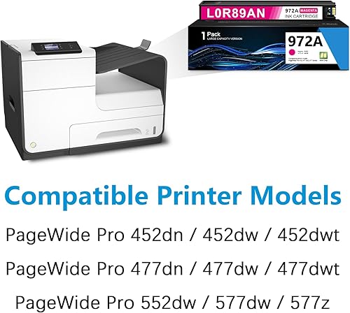 972A Magenta Ink Cartridge 1 Pack (3,500 Pages) Compatible Replacement for 972A Ink Cartridge Magenta 972X PageWide Pro 452dn 452dw 452dwt 477dn 477dw 477dwt 552dw 577dw 577z Printer Ink | L0R89AN