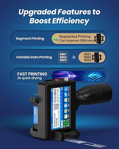 Portable Handheld Inkjet Printer, 0.5" Nozzle & 4.3" Touch Screen Ink Jet Printer for Text/QR Code/Date/Barcode on Wood, Glass, Metal (42ml Quick-Dry Ink, USB Rechargeable)