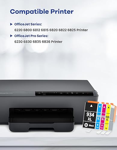 934 and 935 Ink Cartridges Combo Pack High-Yield Replacement for HP 934XL 935XL 934 935 XL Ink Cartridges for Officejet Pro 6230 6830 6835 Officejet 6800 6812 6815 6820 Printer Ink 4-Pack (BK/C/M/Y)