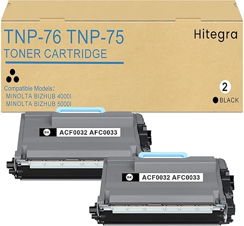 TNP-76 TNP75 Toner Cartridge Black 2-Pack Replacement for Konica TNP76 TNP-75 Toner ACF0032 AFC0033 Compatible with Minolta Bizhub 4000i 5000i Printer Black Toner, High Yield for 12,000 Pages