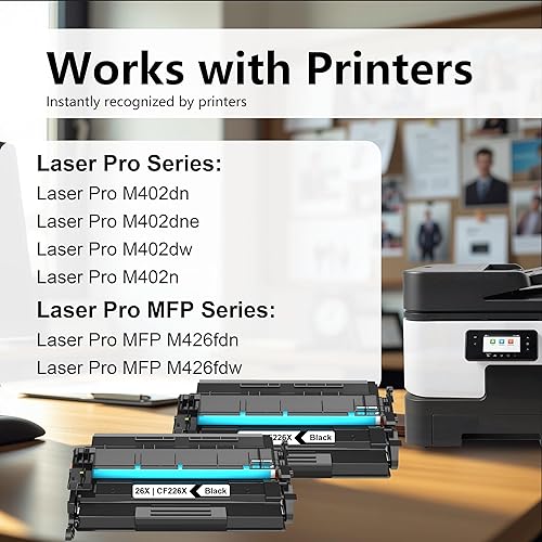 2-Pack 26X CF226X Black Toner Cartridge High Yield: Replacement for HP 26X Toner Cartridge Work with Pro M402dn M402n M402dw MFP M426fdw M426fdn M426dw Printer, CF226XD