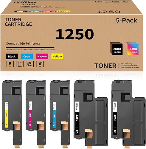 1250 High Yield Toner Cartridge Replacement for Dell 1250 C5GC3 XMX5D WM2JC Compatible with Dell 1250c 1350cnw 1355cn 1355cnw c1760nw c1765nf c1765nfw Printers ( Cyan Magenta Yellow, 3 Pack)