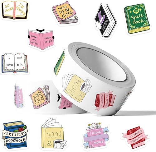 500PCS Bookish Stickers Roll for Kindle 10 Styles Envelope Seals Sticker for Read Decals for Adult Funny Stickers for Scrapbooks Water Bottle Journal Reader Gift Boxes Party Decorations(500 Per Roll)