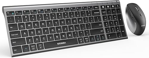 seenda Bluetooth Keyboard and Mouse Combo, COE401 USB+Dual BT Multi-Device, Rechargeable Wireless Keyboard Mouse, Slim Compact Combo Compatible for Mac OS Windows PC Laptop MacBook iPad - Black Grey