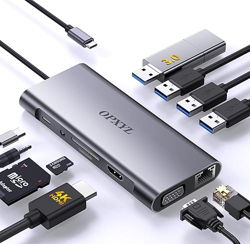 11-in-1 USB C Hub Multiport Adapter, USB C Docking Station with 4K HDMI, VGA 1080P, 100W PD, Ethernet, SD/TF, Audio, USB 3.0 Port, Laptop Dock for MacBook Pro/Air, iPad, Windows