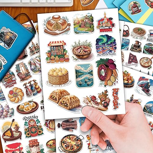 100 PCS Russia Travel Water Bottle Stickers Vinyl Waterproof Decal for Laptop Phone Car Window Skateboard Scrapbook Moscow Vacation Sticker Gifts