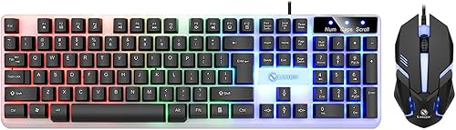 104 Keys Gaming Keyboard and Mouse Combo with RGB Backlit Number Pad, Light Up PC Keyboard, USB Wired Computer Keyboards Gaming for PC Gamer